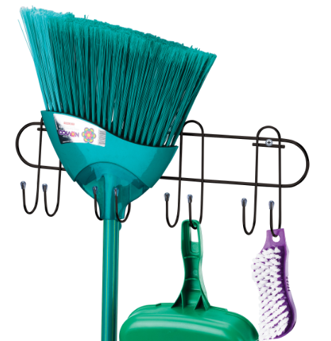 A Utimil dispõe de uma ampla linha de cabideiros de parede. Este modelo 4 ganchos é mais indicado para acomodar vassouras, rodo, pá para lixo, etc. Pode ser instalado na área de serviço, atrás da porta, no armário, etc. Organiza os utensílios para limpeza do dia a dia. Prático e funcional.