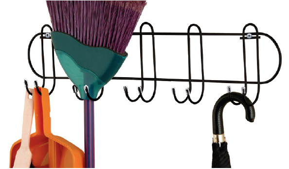 A Utimil dispõe de uma ampla linha de cabideiros de parede. Este modelo 5 ganchos é mais indicado para acomodar vassouras, rodo, pá para lixo, etc. Pode ser instalado na área de serviço, atrás da porta, no armário, etc. Organiza os utensílios para limpeza do dia a dia. Prático e funcional.