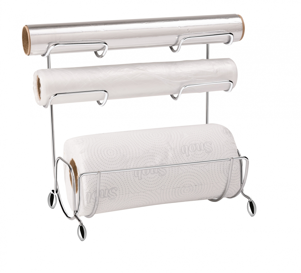 Com o Suporte rolo de papel/alumínio/pvc de Bancada fica tudo mais organizado e ao alcance da mão. Ele acomoda rolo de papel toalha, rolo de plástico e rolo de papel alumínio.