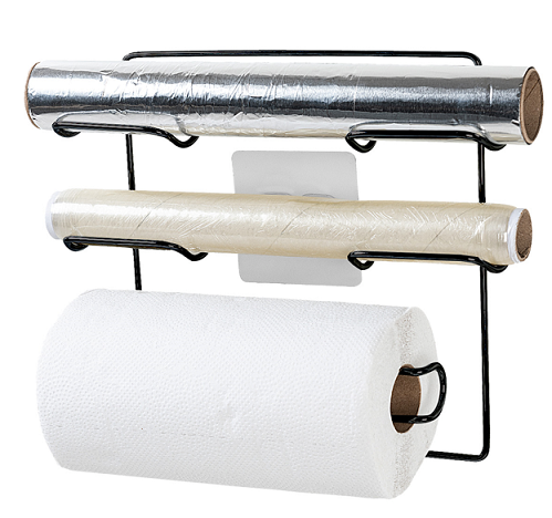 Porta Rolos de Papel Toalha Preto Linha Adesiva para Parede