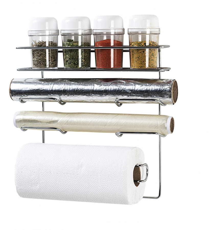 A sua cozinha merece acessórios e produtos para facilitar o seu dia a dia. O porta rolo de papel toalha Utimil deixa tudo mais a mão. Ele acomoda também rolo de plástico, rolo papel alumínio e 5 potes para os condimentos. Acompanham buchas e parafusos para sua fixação.