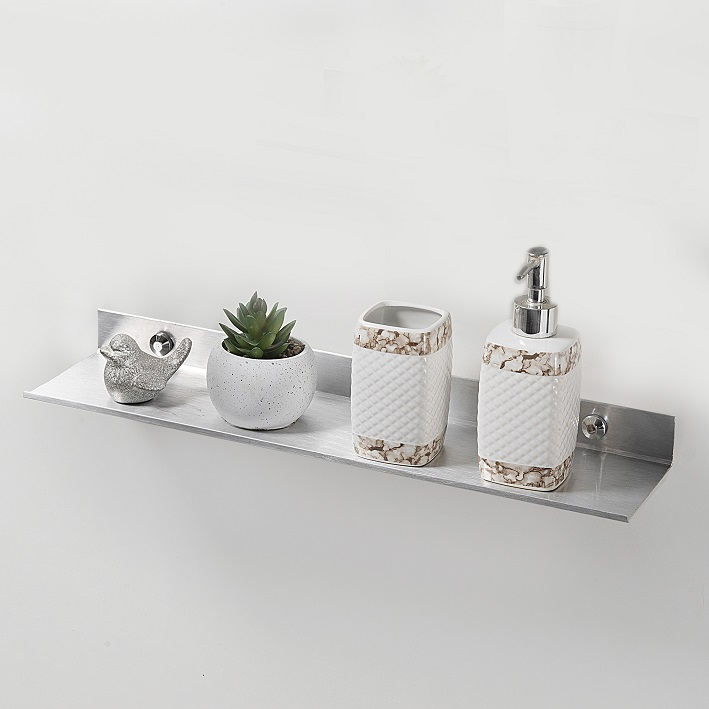 Esta prateleira é fabricada em alumínio de alta qualidade e tratamento de anodização, o que lhe confere durabilidade excepcional e um visual moderno. O tratamento de anodização da peça não apenas protege a prateleira contra desgaste, mas também a torna resistente à umidade, perfeita para uso em ambientes como banheiros.