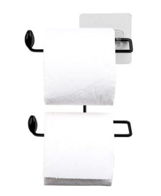 Suporte p/ 2 rolos de papel higiênico Preto - Linha adesiva para parede