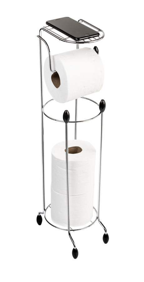 O suporte de papel higiênico de chão Utimil é essencial para o seu banheiro. Com espaço para 3 rolos de reserva e um rolo em uso, é prático e compacto. A pequena prateleira adicional proporciona conveniência, enquanto as ponteiras cromadas acrescentam elegância ao ambiente. Funcional, discreto e com um toque de requinte, este suporte é a escolha perfeita para manter tudo à mão no seu banheiro.