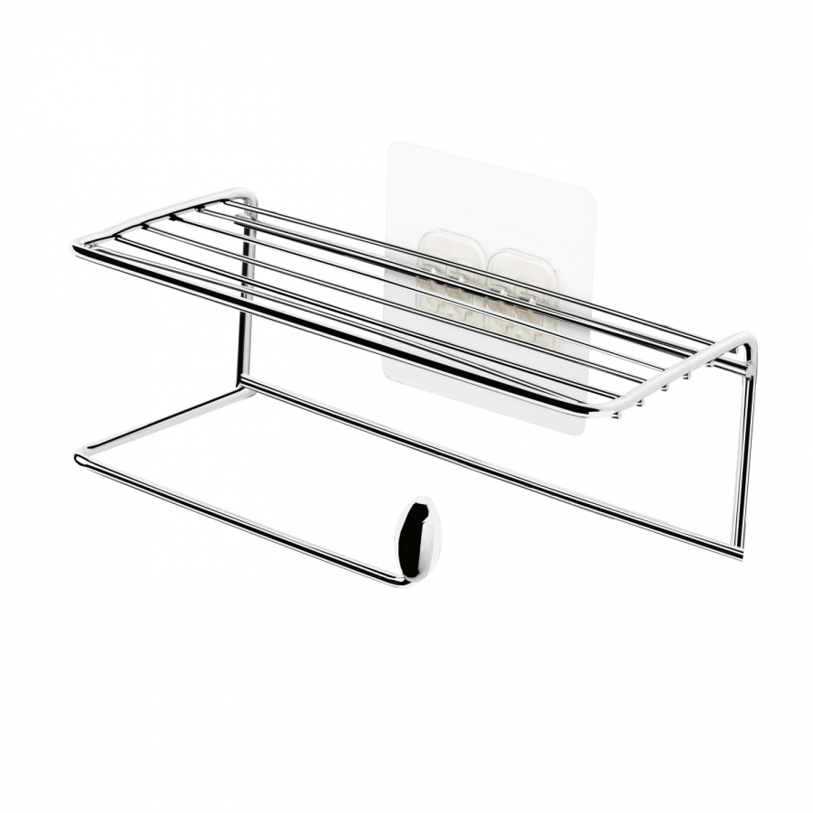 Suporte Rolo Papel Higiênico e Celular Cromado - Linha adesiva para parede