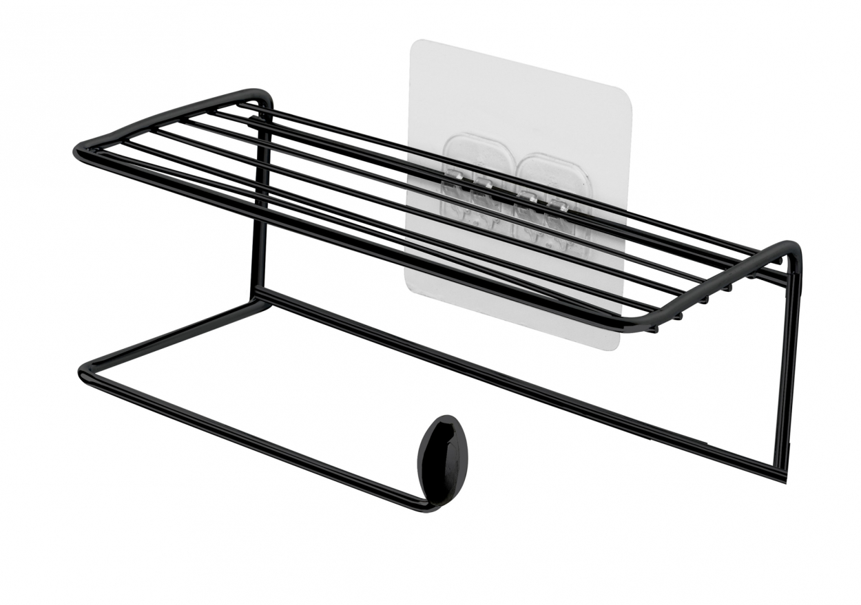 Suporte Rolo Papel Higiênico e celular Preto - Linha Adesiva para parede