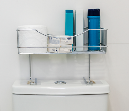 A Prateleira de Banheiro Caixa Vaso acoplado é moderna e com design diferenciado e foi projetada para ser utilizado tanto sobre a caixa acoplada do vaso quanto em outro local ficando de pé. A fixação é pelos pés da prateleira através de ganchos adesivos. O adesivo tem ótima aderencia nos seguintes materiais: vidro, azulejos, mármore, granito, madeira lisa envernizada e outras superfícies lisas e suporta 3 kg de peso. Na prateleira podem ser armazenados os mais diferentes itens, desde rolos de papel higiênico, cremes, shampoos e etc.