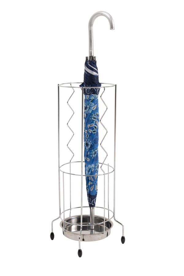 Com coletor de água todo em aço inoxidável e estrutura em arame cromado o porta guarda-chuva Utimil veste seu ambiente com elegância e funcionalidade. Na argola do meio acomoda os guarda-chuvas menores na argola superior os guarda-chuvas maiores. As pernas bem abertas não deixam o porta guarda-chuva tombar. Ele é prático e funcional.