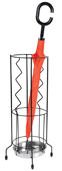Com coletor de água todo em aço inoxidável e estrutura em arame de aço com pintura epóxi preto brilhante o porta guarda-chuva Utimil veste seu ambiente com elegância e funcionalidade. Na argola do meio acomoda os guarda-chuvas menores na argola superior os guarda-chuvas maiores. As pernas bem abertas não deixam o porta guarda-chuva tombar. Ele é prático e funcional.