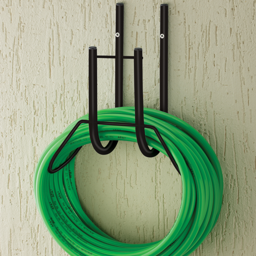 Organize de forma prática e funcional a mangueira d’agua para suas atividades diárias. Deixe tudo mais à mão. Assim, você evita da mangueira dobrar, amassar, etc. Tenha em casa seu suporte e dê vida longa para a mangueira.