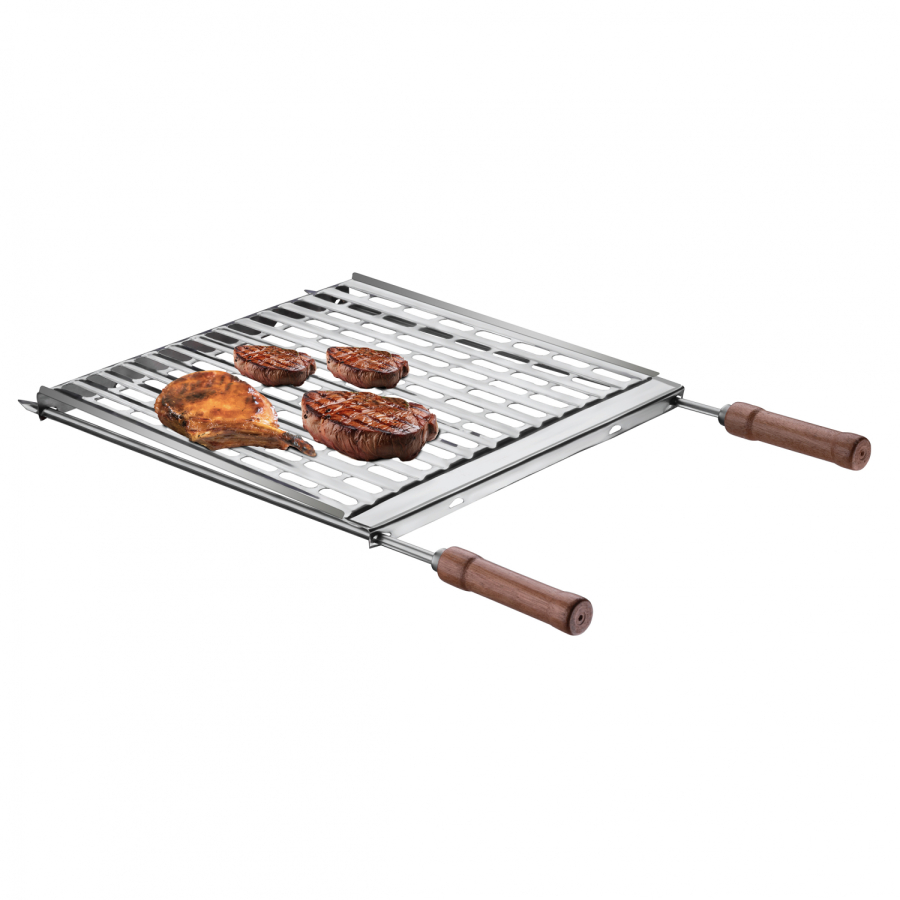 Grelha Aço Inox c/ coletor de gordura – Utimil ref. CR620 – é o acessório perfeito que faltava em sua churrasqueira. Muito resistente, é fabricada em aço inox com cabos em madeira. Adquira a sua! A grelha possui um eficiente sistema de canaletas para o escoamento de gordura e um reservatório perfeitamente acomodado para sua coleta. Desta forma a limpeza fica muito mais fácil, o que aumenta ainda mais a durabilidade da peça. O sistema de coleta de gordura também ajuda a manter o sabor do seu corte de carne preferido sem a alteração da defumação causada pela fumaça, já que a incidência de fumaça é minimizada pela ausência da queda da gordura na brasa. Além de carnes você pode utilizar legumes, queijos ou usar usa criatividade tudo isto com pouca fumaça.